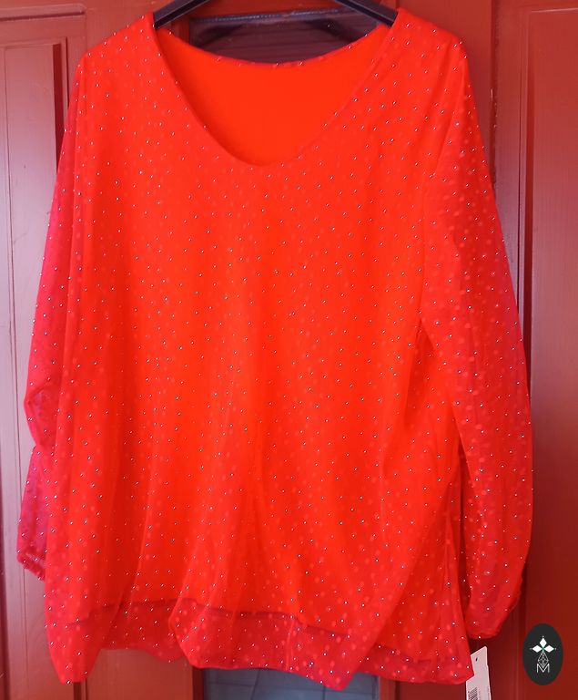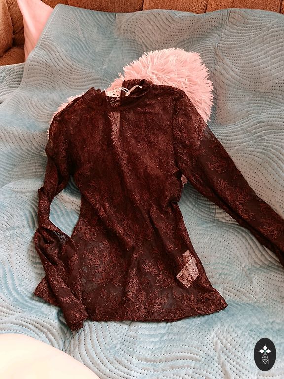 Väga elegantne, tumepruun satiinist pluus. Kangas on sile ja kergelt langev ning meeldiv nahale. Pluusil on vaba, lehviv lõige, kõrge kaelus dekoratiivsete paeltega tagaosas, pikad varrukad kitsaste otstega ja nööpidega. Sobib ideaalselt nii kontorisse kui ka pidulikele üritustele. Lihtne kombineerida seelikutega, klassikaliste pükstega või teksadega. Kahjuks oli see mulle liiga suur, märgitud suurus L, kuid vastab XL või väikesele XXL-le. Kohaletoimetamine hinna sees. Dpd, omniva.