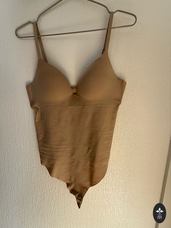 2. Hipster tipo besiūlis koreguojantis bodis SMĖLIS yra M dydžio.