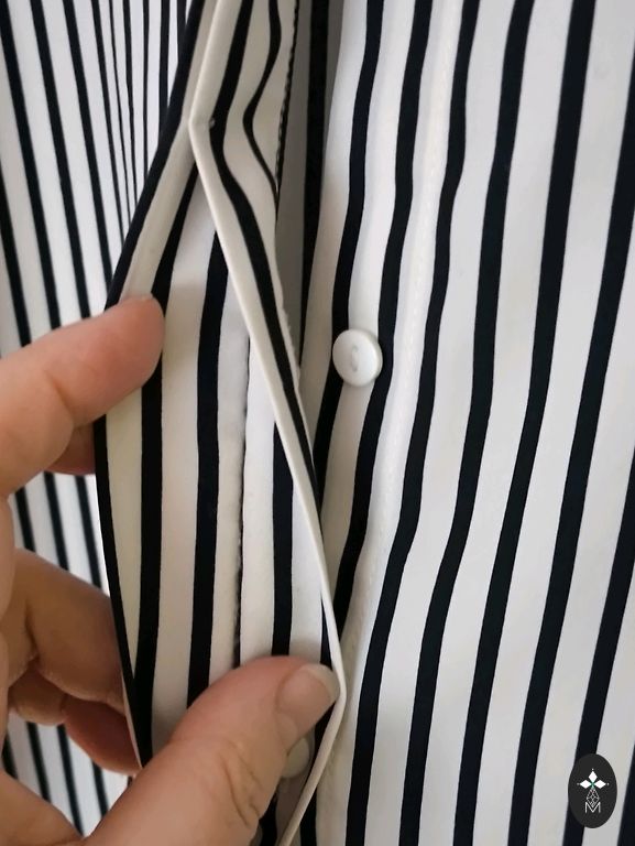 Saīsināta blūze vai wrap tops no zīmola NLY Trend (Nelly). V-veida izgriezums un garas piedurknes. Druka: Ziedu raksts uz tumša (melnā) fona. Īpašības: Elastīgs ieliktnis (gumija) jostasvietā, kas veido pieguļošu siluetu ar nelielu volānu.