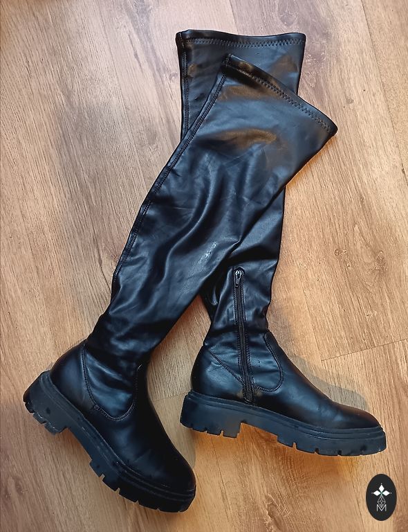 Aukšti dirbtinės odos batai, 39 dydis. Avėti vieną kartą - man jie šiek tiek per siauri. Defektų nėra, puikios būklės.