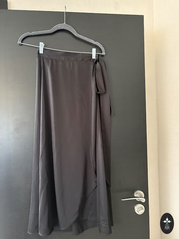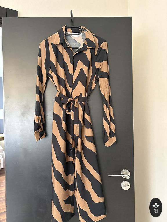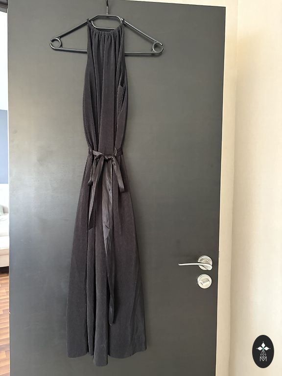 Juoda kasdieninė oversize tipo suknelė su diržu. Audinys zamšo tipo. Ilgis 95 cm.