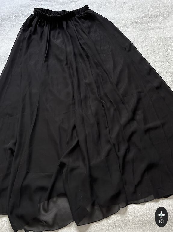 Maxi ilgio naujas sijonas, dėvėtas tik vieną kartą, supratau, kad man per didelis. Dydis nurodytas 36, tinka stabiliai S dydžio. Šiek tiek tampraus audinio su aukštu juosmens. Nugaros pusėje yra skeltukas.