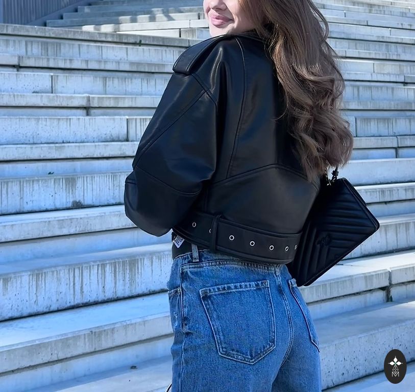 Trumpa odinė striukė pavasariui, yra mažų trūkumų, matomų nuotraukose, bet jie netrukdo dėvėti. Nurodyta M, bet man ant S labai aptempta.