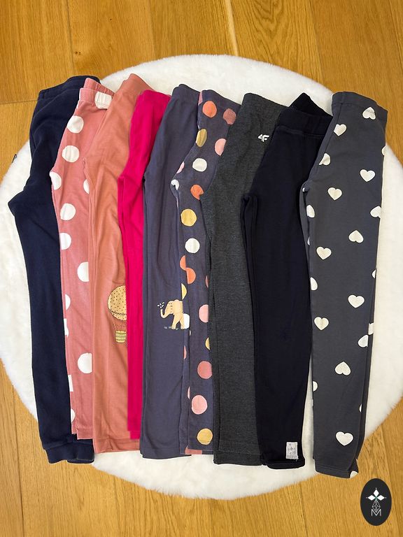 Tamprės tokios smulkesnei mergaitei. Striukė, viršutinė striukė, suknelės ne tokios „smulkios“. Žinoma, beveik viskas turi dėvėjimo požymių, kažkas išblukę arba keliuose nusitrynę, bet nėra nudėvėta ar nušiurusi, viskas daugiausia 104 cm, yra, kas šiek tiek didesnis.