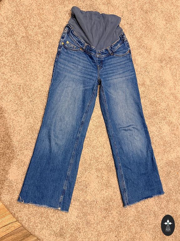 M dydžio nėščiųjų džinsai, audinys pilvui nėra išsitampęs.