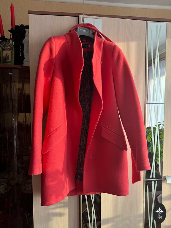 Puikiai priglundantis ilgas tarpsezoninis paltas - oversize, bet tiesiai krentantis. Nurodytas 40 dydis, tiks M iki mažo L. Naudotas, bet defektų nėra. Siuntimas +1.99€