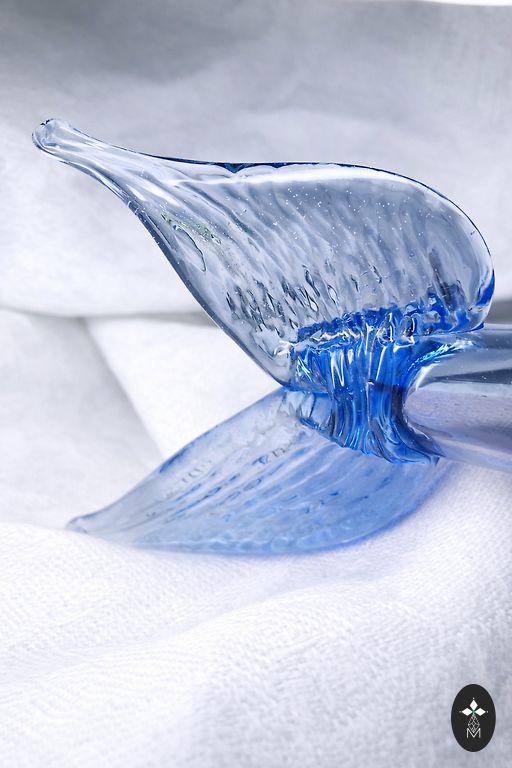 Heavy glass vase with a floral pattern