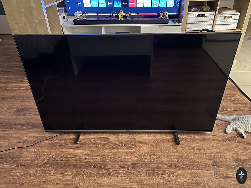 Televizors pirkts 2022. gadā, lietots saudzīgi, bez skrāpējumiem vai attēla defektiem. Viss darbojas ideāli – nav tumšu pleķu, līniju vai citu bojājumu. Ambilight apgaismojums strādā perfekti. Vienīgais, kas dzīvi ir redzējis, ir pults. Bet pogas strādā