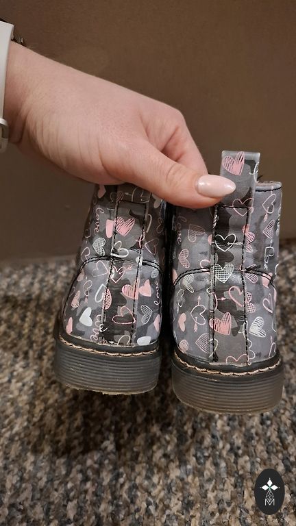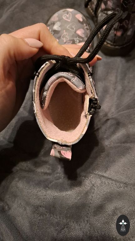 Pažeidimas matomas paskutinėje nuotraukoje. Užsidėjus ant kojos, į akis nekrenta, jis yra viduje.