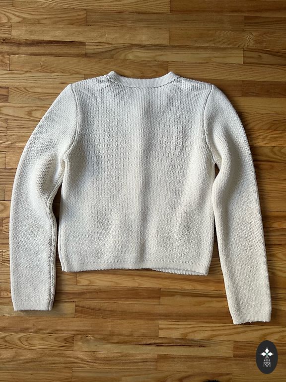 Megztinis be defektų. Spalva tikrai išblukusi, jei palygintume su nauju megztiniu, tačiau kitaip defektų nėra.