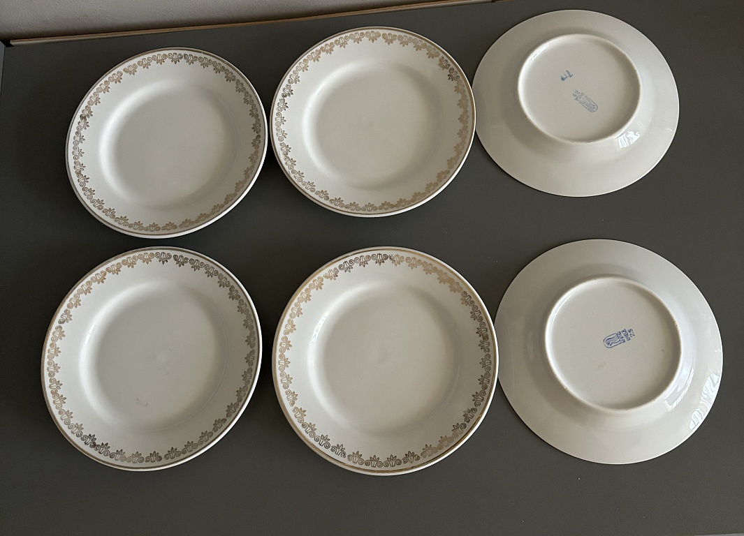 Lėkštutės diametras 15,5 cm. Indai yra idealūs, be defektų. Tik tiek, kad perkelti iš vienos vietos į kitą. Arbatos/sultinio lėkštutės su violetinėmis gėlėmis. Komplektinė kaina.