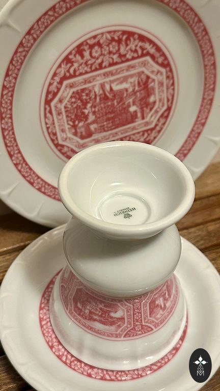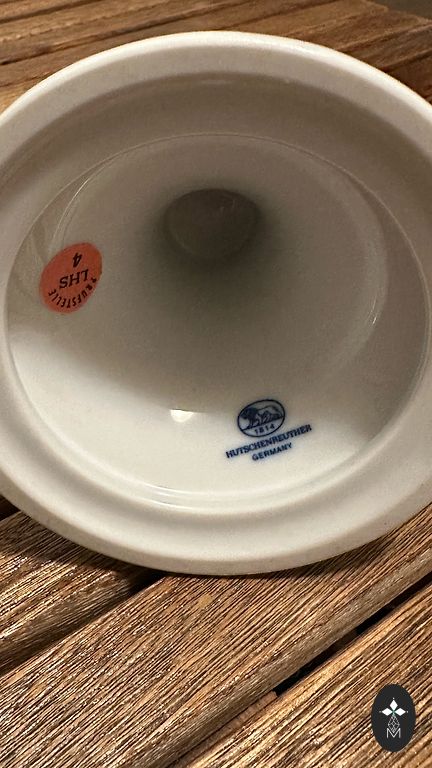 Schaller fabrika, kas dibināta 1882. gadā Švarcenbahā, vēlāk kļuva par daļu no slavenās Winterling grupas. Zīmogs ar kroni un skaitli "1884" tika izmantots pēckara periodā, lai uzsvērtu uzņēmuma senās tradīcijas. Šī trauka unikālais mirdzums ir panākts ar īpašu metālisku oksīdu pārklājumu, kas raksturīgs tā laika greznākajiem servīzēm.