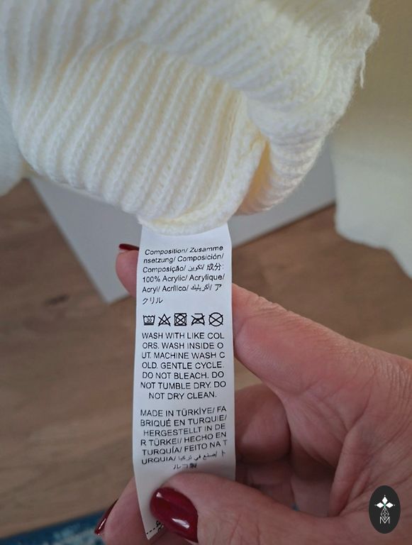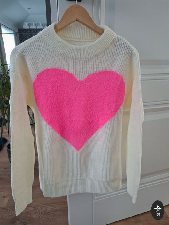 New sweater with a size S label.
