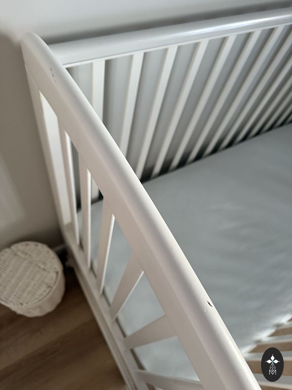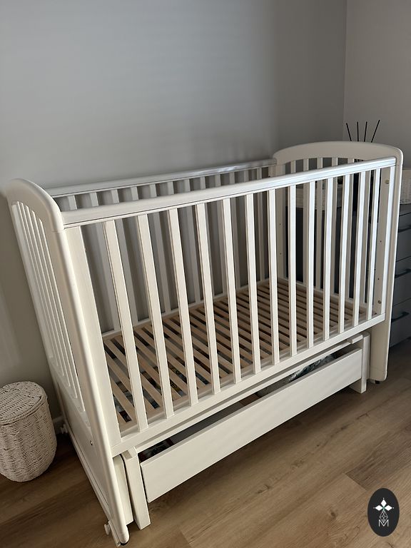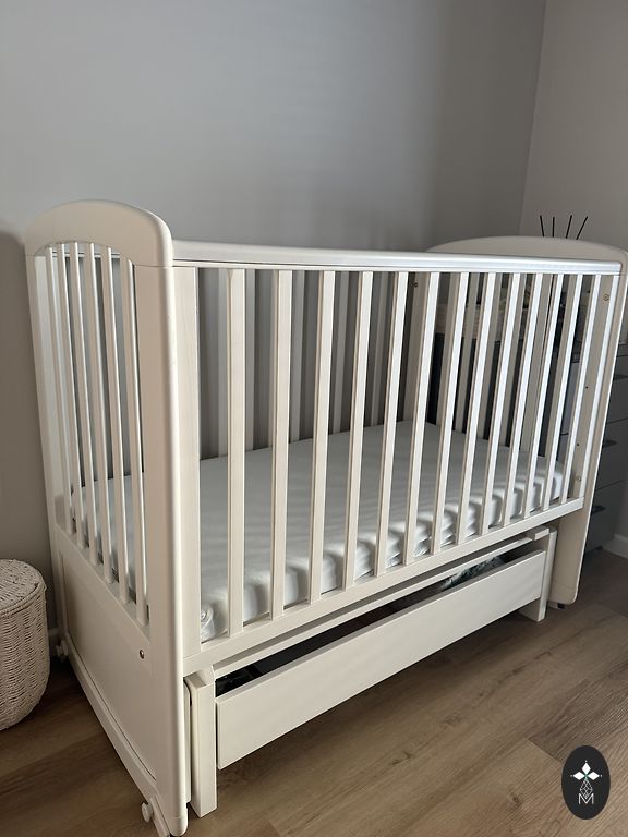 Детская кроватка Troll. Небольшие царапины и одно пятно на матрасе, который отдаю вместе. Размер кроватки 63x123.