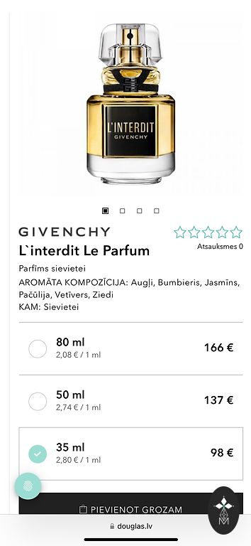 Цена в магазине 100 мл - 171€.