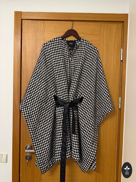 Paltas vilna su poliesteriu 44 dydis. Graži šviesiai mėlyna spalva. Nuo juosmens šiek tiek platėja. Yra kišenės ir pamušalas, ilgis 120 cm ir krūtinė 106 cm. Liekninantis efektas ir labai elegantiška išvaizda.