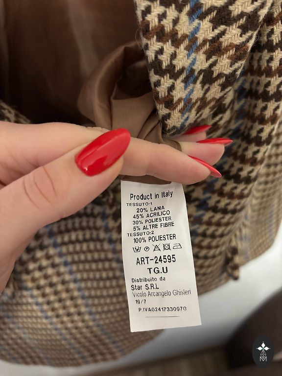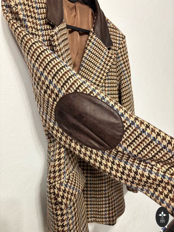 Patogi 6 mygtukų švarkas su skoningu juodo aksomo akcentu. Yra 2 išorinės kišenės, krūtinės kišenė, vidinė kišenė (atsiskyrusi kraštelė).