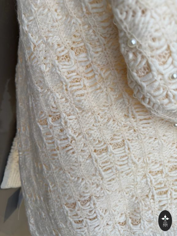 Pati uzadīju, diemžēl par mazu. Sastāvs- vilna ar mohēru. Krūtīs 90, garums 55, rokas no kakla 65 cm. Krāsa vairāk kā 1.bildē, piena dzeltenīga, balta