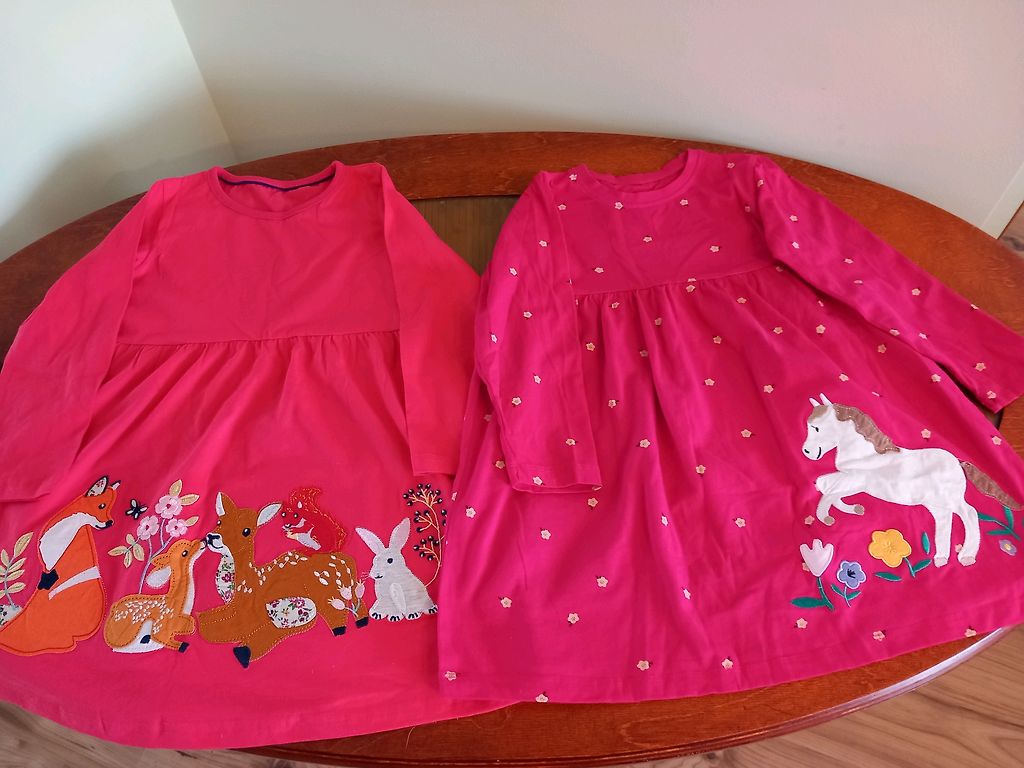 Комплект из пяти платьев. Яркие, удобные, в очень хорошем состоянии, подойдут и для более полного ребенка. На этикетке указано пять лет, мы носили и в шесть лет. Доставка уже включена в цену.