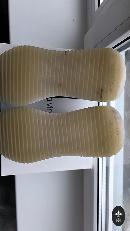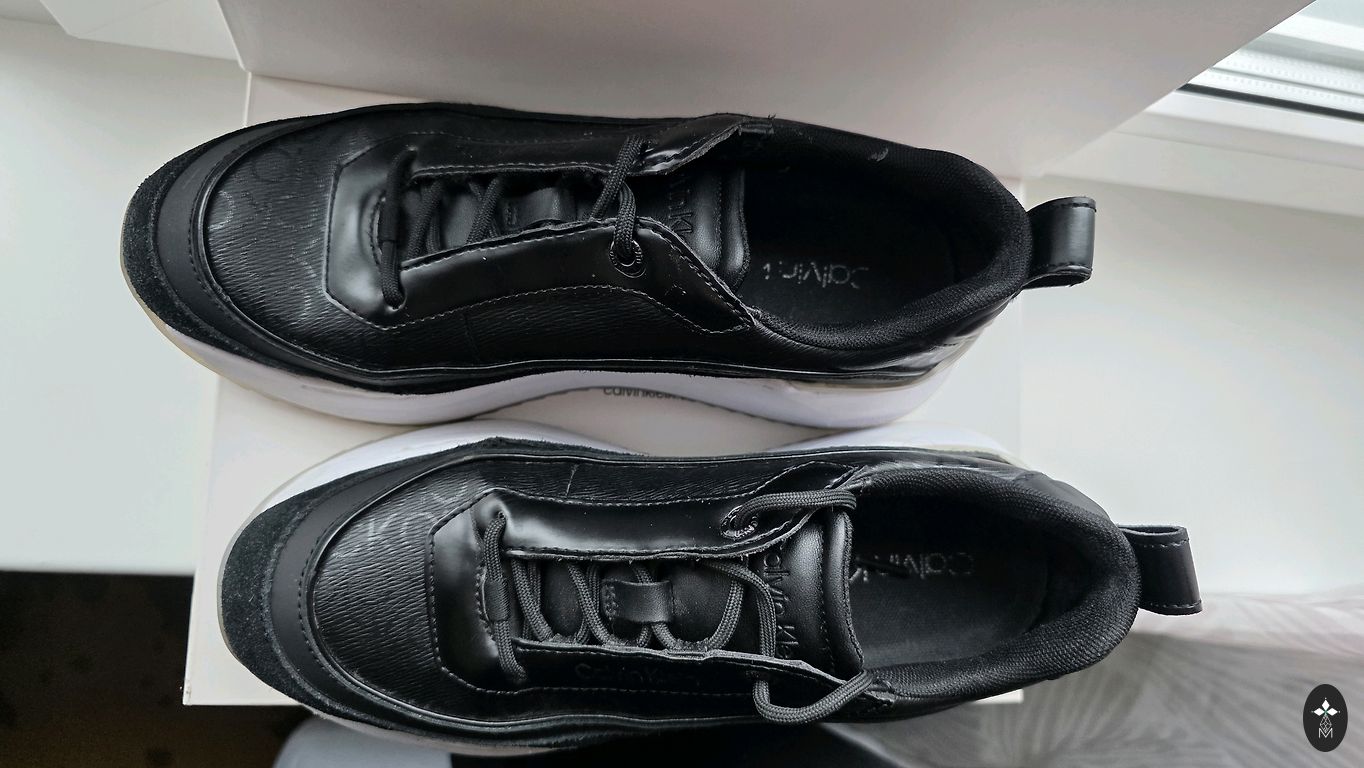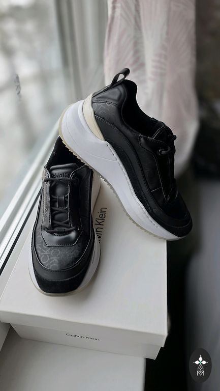 Müün musti Calvin Kleini kangast tosse, millel on valge tald ja logo paelad. Mugavad ja kerged, sobivad igapäevaseks kandmiseks.