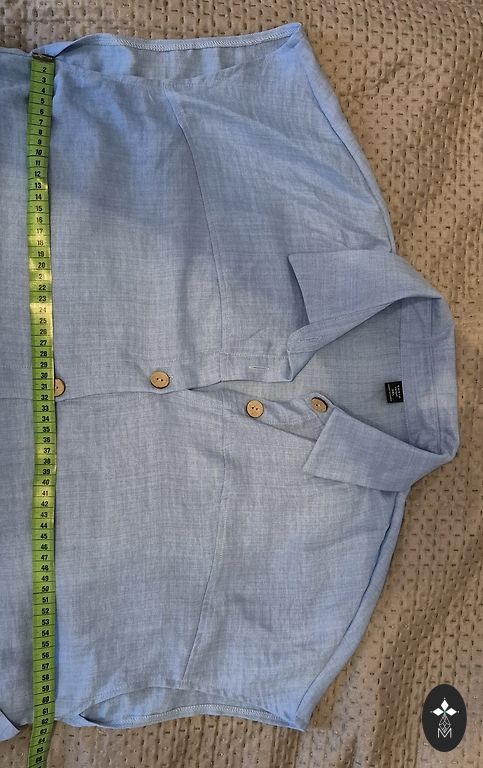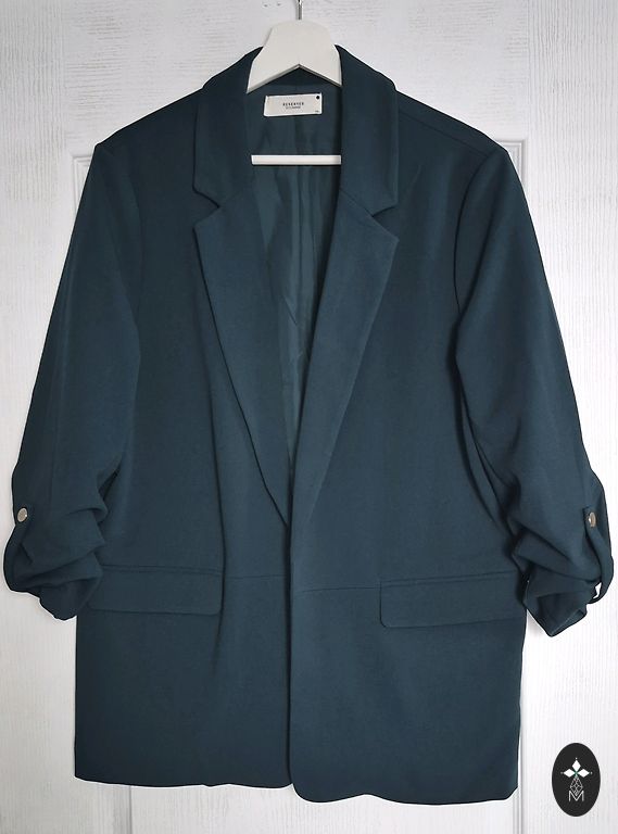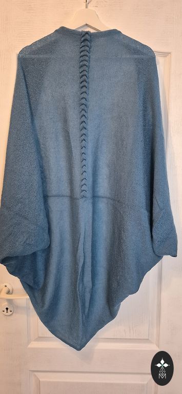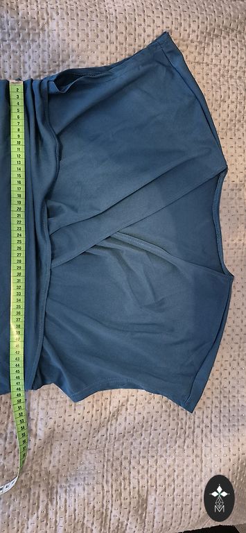Suurus 16/18 UK. Sobib hästi suurusele 46. Läikiv osa 76% polüester 24% metallkiud. Sees ja tagaküljel 95% polüester 5% elastaan. Top on pehme ja meeldiv, kuna sees on kangas. Varrukatel on kangas laiem ja vabalt langev.