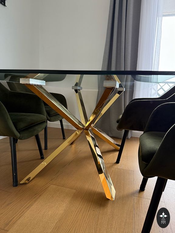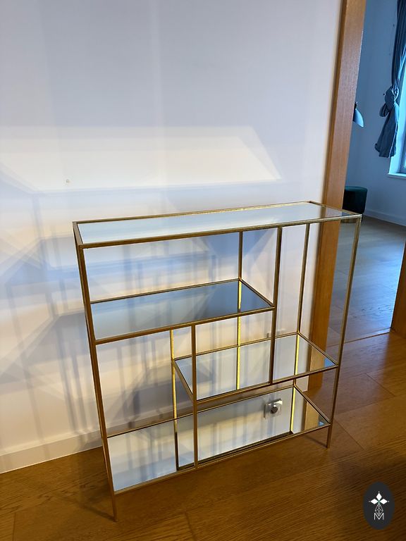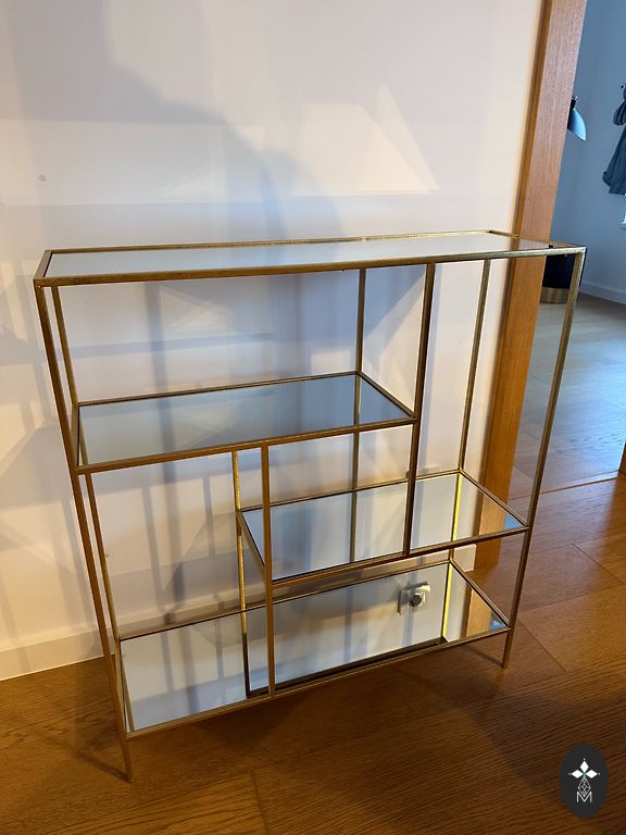 Selling a round coffee table with a marble imitation surface and gold legs. In good condition.