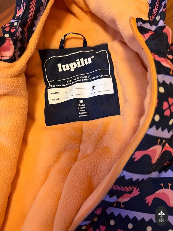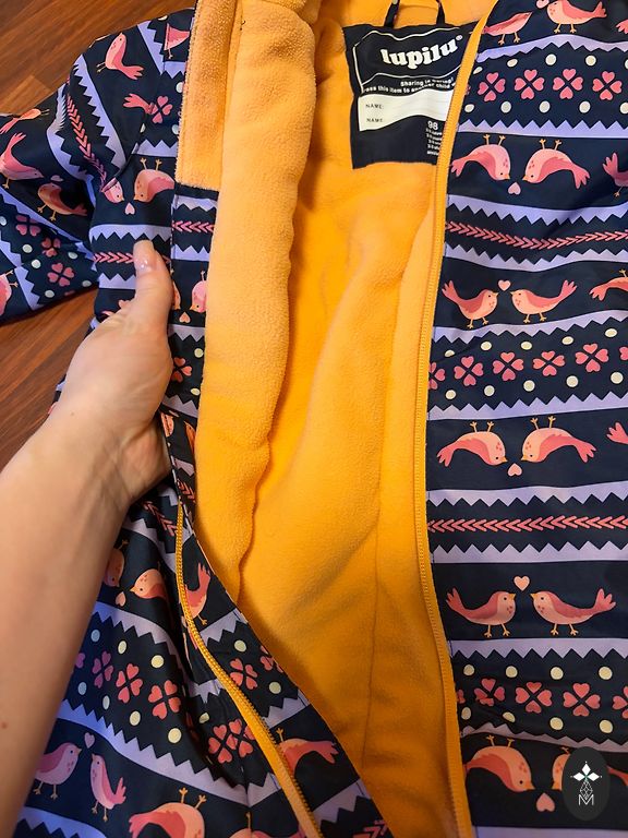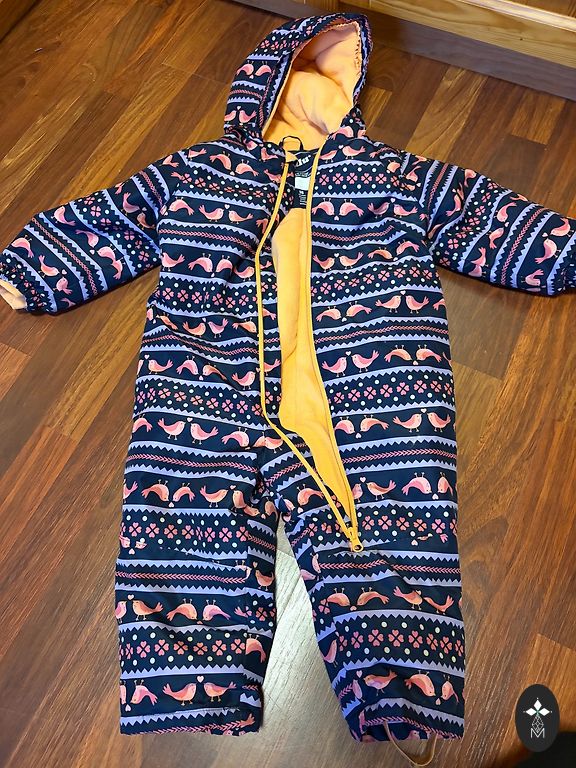 Labai šauni vandeniui atsparūs kombinezonai - viduje fliso pamušalas, nedidelis apšiltinimas. Patogus apsivilkimas, kišenės, gobtuvas, elastinės - kaip ir Didriksons - viskas apgalvota. Matomos naudojimo žymės, vienos kojos gale nežinomos kilmės skylė - kažkur praplėšta, tai tikrai galima pataisyti su kokiu nors lopu. Dydis 110.