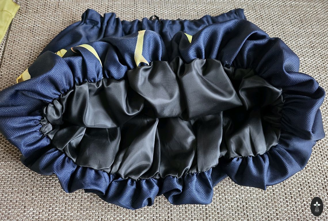 Augšdaļā materiāls stiepjas