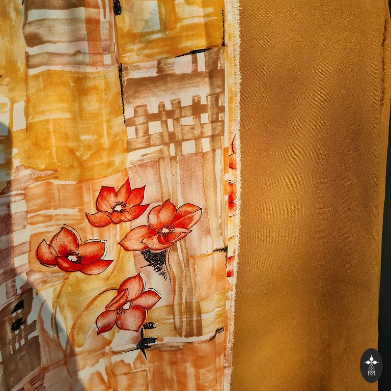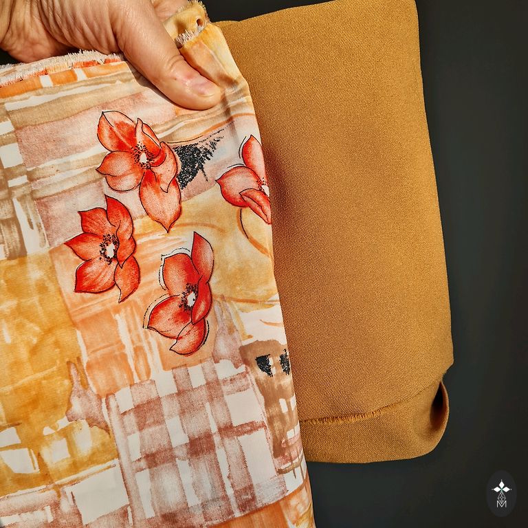 Solid color - for a skirt or shorts, patterned - for a blouse or dress.