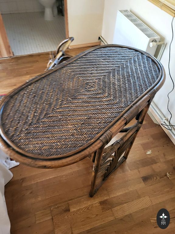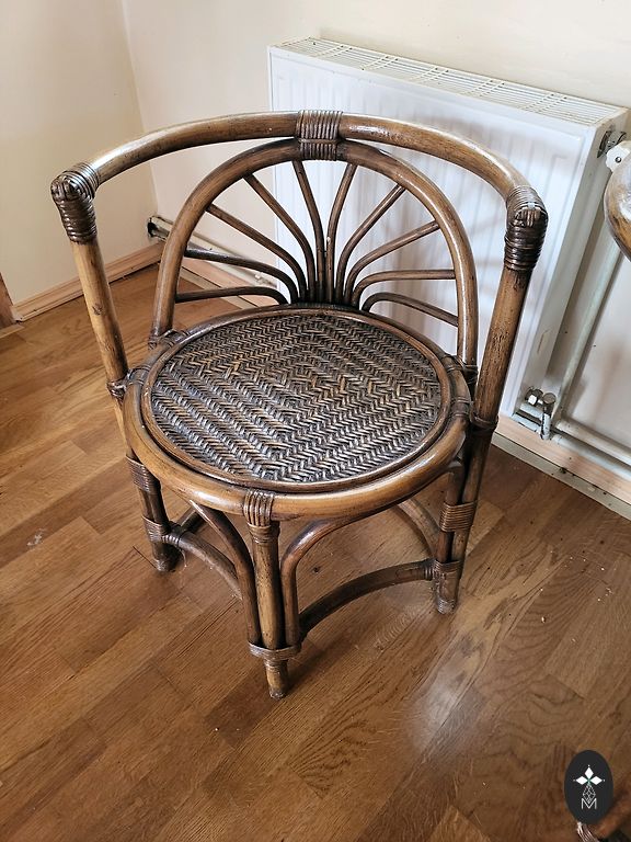 Винтажное изголовье кровати из бамбука. В целом в отличном состоянии. Есть небольшая дырочка в плетении. Видно на фотографиях.