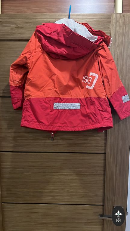 Geros būklės apšiltintas lietaus parkas. Ant audinio liko nedideli tamsūs taškeliai, kurių man nepavyko išplauti. Nėra ypač pastebimi, jei nežinote, kur žiūrėti.