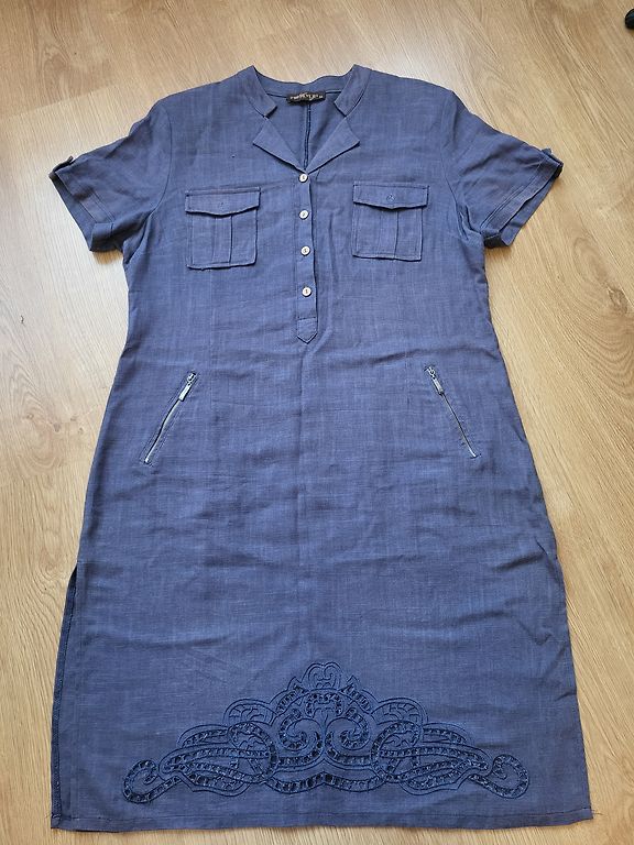 Ei ole kordagi selga pannud. Kerge, õhuline, ilusasti langev. Vajab triikimist. Seisis kapis. Laiad varrukad. Vöö. Suurepärane kontorikleit.