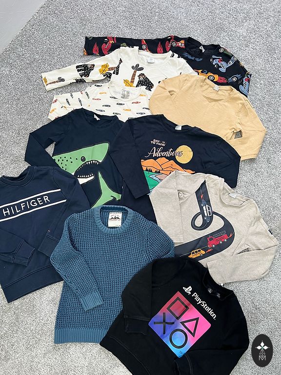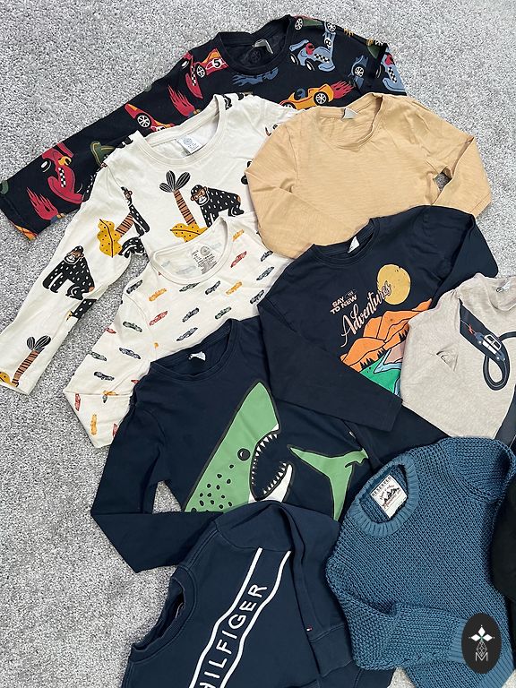 Lietotas drēbes labā stāvoklī,Sinsay krekli 3gb jauni, bildē redzamās 80.izm., klāt varu atdot 7gb 74.izmēra vai ar kādu minimālu pleķīti.Sūtu.