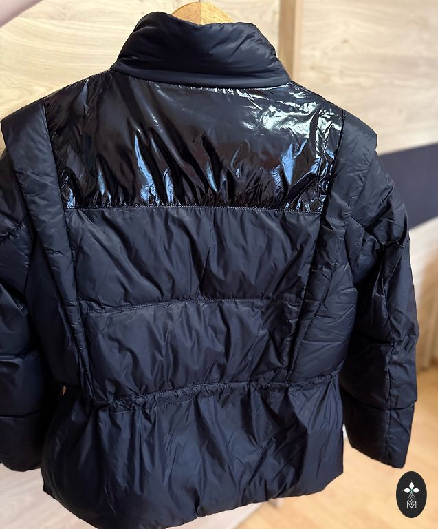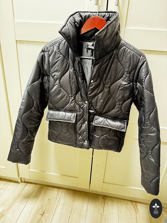 Красивая и практичная. Съемный капюшон. Новая без бирки. Написан размер L, но на самом деле не больше M.