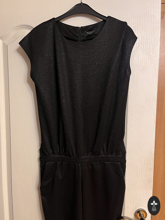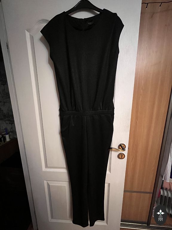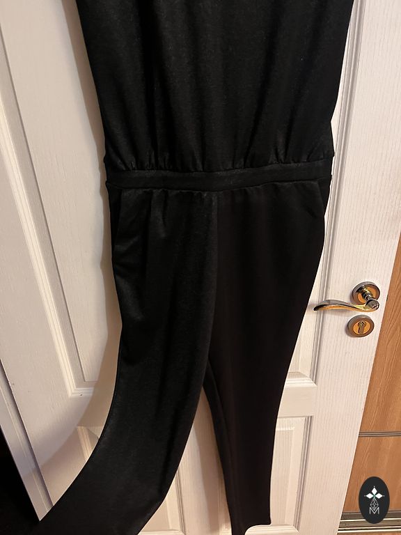 Jakk: kaenla alt 47x2, varruka pikkus õlast 61cm, jakki pikkus 61 cm, vöö 42x2. Püksid: vöö 40x2, puusad 53x2, sisemise õmbluse pikkus 71cm, välimise õmbluse pikkus vööst 97cm. 67% polüester 31% viskoos 2% elastaan. Pükstel külgedel ja taga taskud.