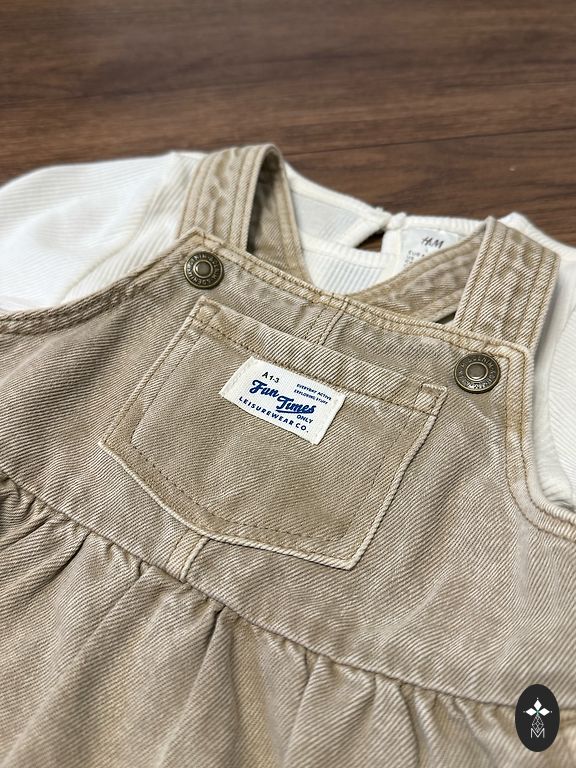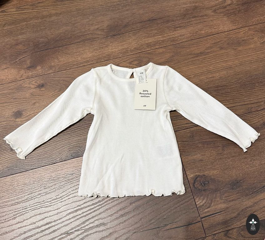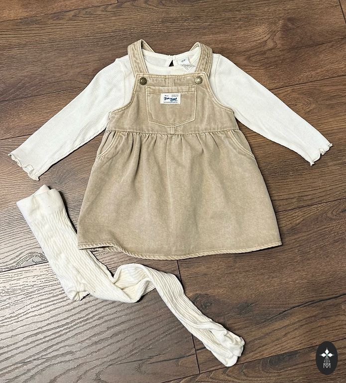 Kampsun jäi ikkagi selga panemata, kleit on uus. Siltidele on märgitud suurus 74.