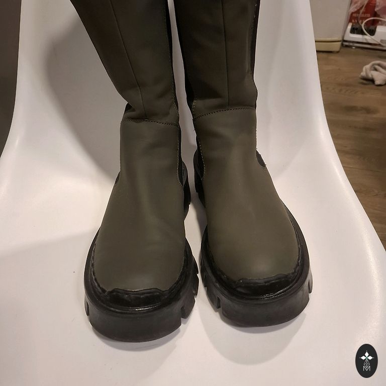 With a warm interior that is not removable in sizes 22-23. There are visual scratches, which can be seen in the picture.