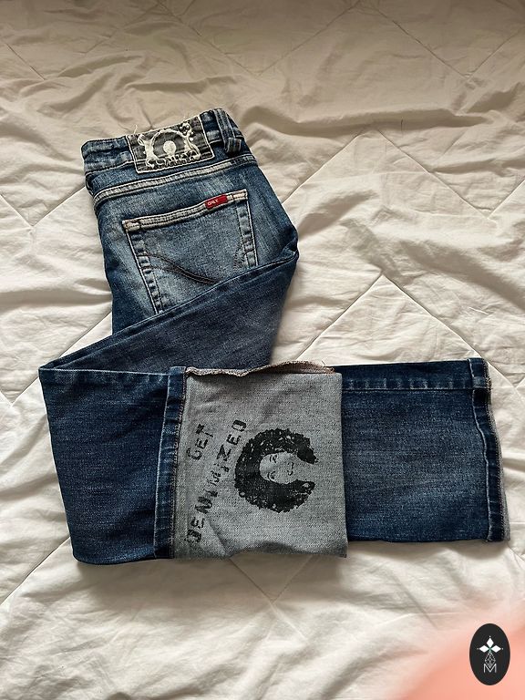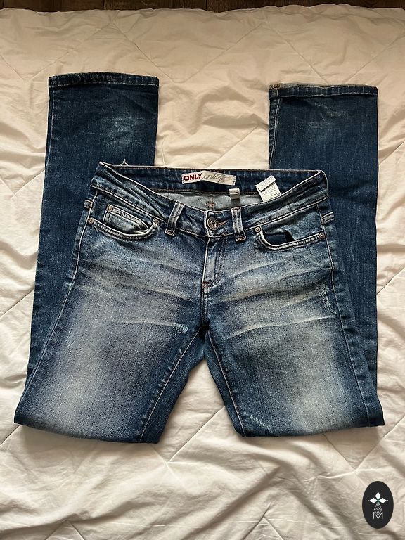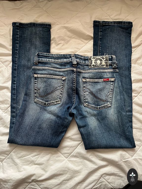Low rise y2k jeans. Insane Y2K find. Premium denim with heavy gold/silver embroidery & rhinestones. Pristine condition (NO paper TAGS).