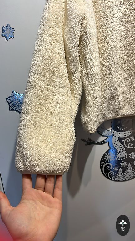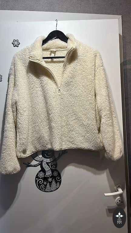 Norādīts M,bet derēs arī L(sk. manus mērus). Džemperis ar odziņu. Šur tur varbūt kāds novēlies vilnas bumbulīts.