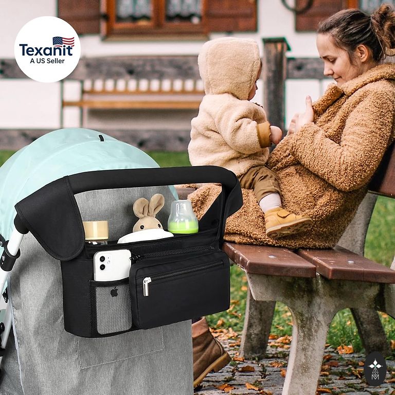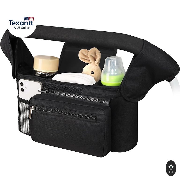 Eleganti, patogiai, talpi, organizacinė vežimėlio krepšys/kuprinė juodos spalvos. Šis modelis turi 11 organizacinių kišenių: 7 viduje (2 iš jų yra termo kišenės); 4 išorėje. Krepšį galima nešioti ne tik ant peties einant pasivaikščioti su mažyliu, bet ir patogiai pritvirtinti prie vežimėlio rankenos dėka specialių diržų.