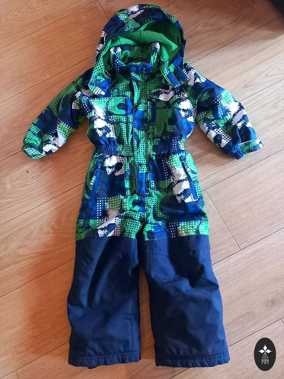 Kombinesoon kevadeks. Alumine osa (kus nupud) kummiga. Traksid eemaldatavad pükste sääre otstes. Sees fliis ja väike soojustus. Kasutamise jäljed minimaalsed. Suurus 98 cm. Arvan, et sobib 98-104 cm. Pikkus õlast 90 cm. Sisemine sääreosa 40 cm. Otsite lasteaeda, siis ideaalne. +1.70/1.99 pakiautomaadid.