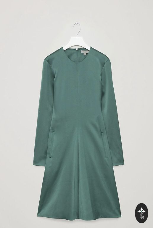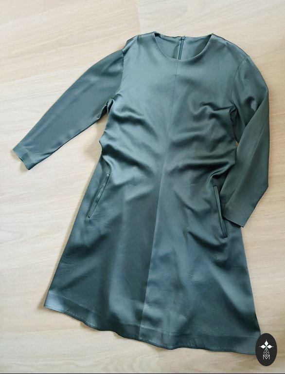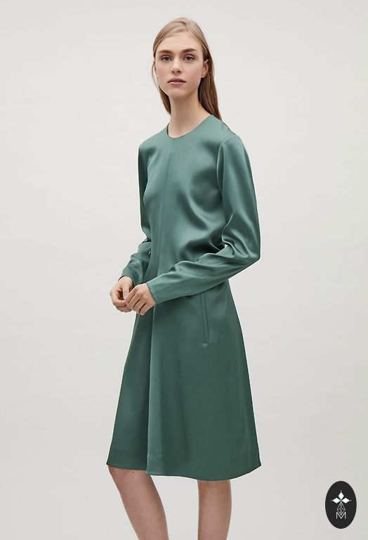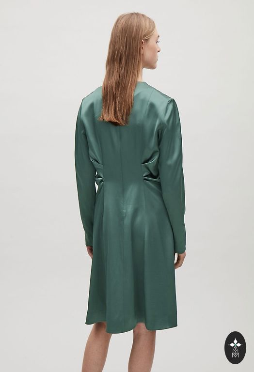 Suknelė švelniai žalsvos spalvos.