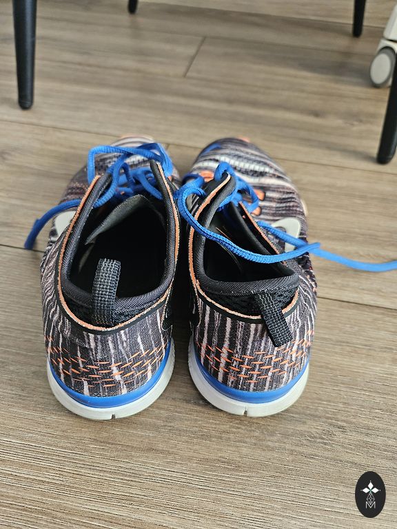 Vidpadis 24,5 cm. Yra keletas nešvarumų, o vieno bato priekyje, prie raištelių, šiek tiek atirusi siūlė, bet užsidėjus tai nematyti.