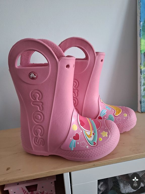 Продаю милые и яркие резиновые сапоги для активных прогулок! Они не только практичные, но и выглядят очень стильно. Размер UK 4, что соответствует размеру EU 20. Внутренняя стелька ~11.5-12 см.
