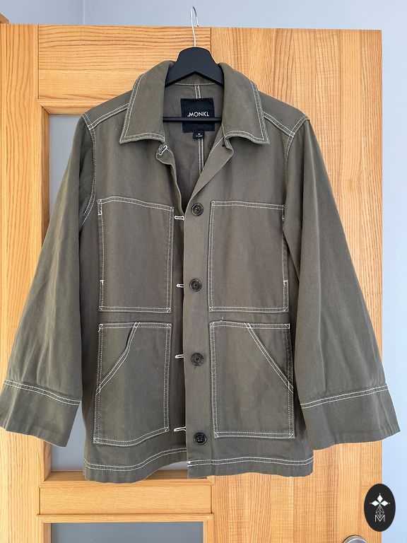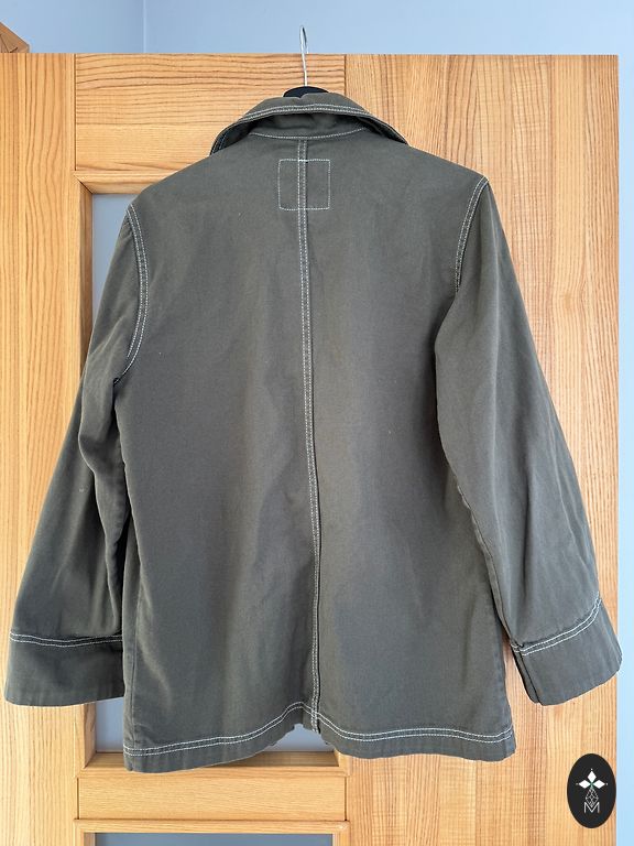 Lengvas pavasarinis švarkelis su aukšta apykakle. Spalva kaip paskutinėje nuotraukoje, šviesiai chaki.