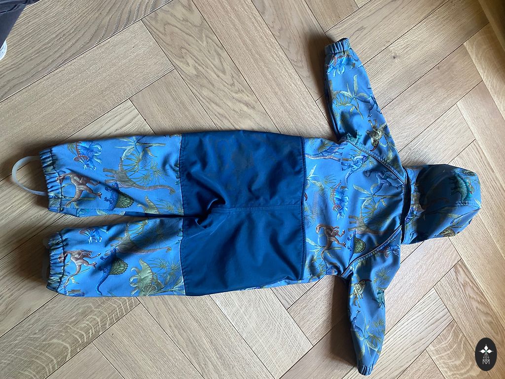Kelis kartus uždėtas. 134 dydis. Ilgis nuo peties 118cm, nuo peties iki klyno 67cm. Yra gumos, rankos ir kojos nėra nusidėvėjusios, keliai ir užpakalis nėra susidėvėję.