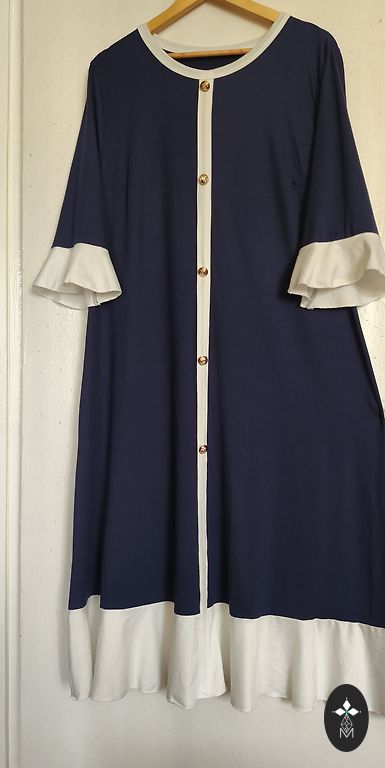 Новое, неиспользованное платье типа блейзер с пуговицами и завязывающимся поясом. Внутри встроены резинки, чтобы можно было застегнуть платье изнутри, что обеспечивает его непроизвольное раскрытие. Состав: 30% лен.