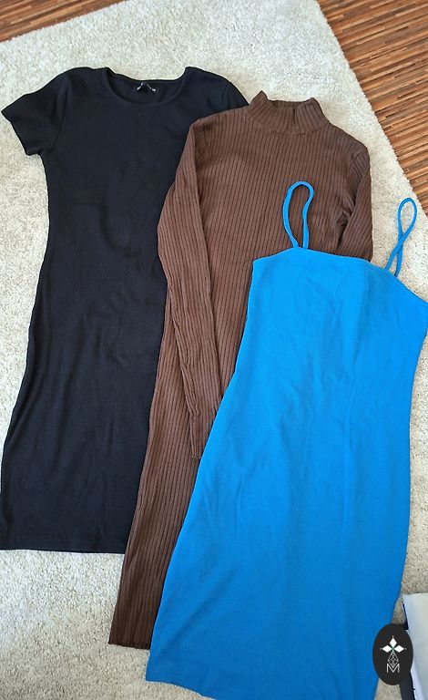 Set of pants, dress, and top