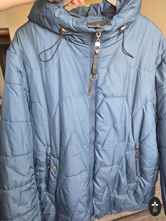 Krūtinė 98cm, liemuo 90cm, klubai 104cm, ilgis priekyje 76cm, gale 81cm, rankovės nuo peties 63cm.