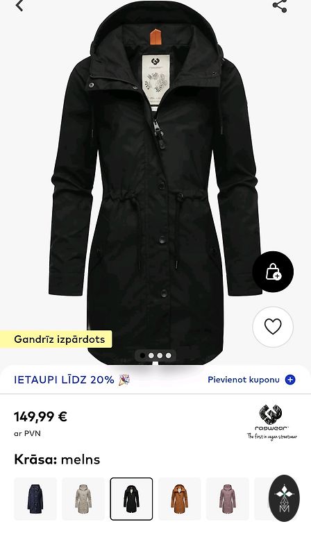 Kapišonas ir pūkas nuimamos atskirai.